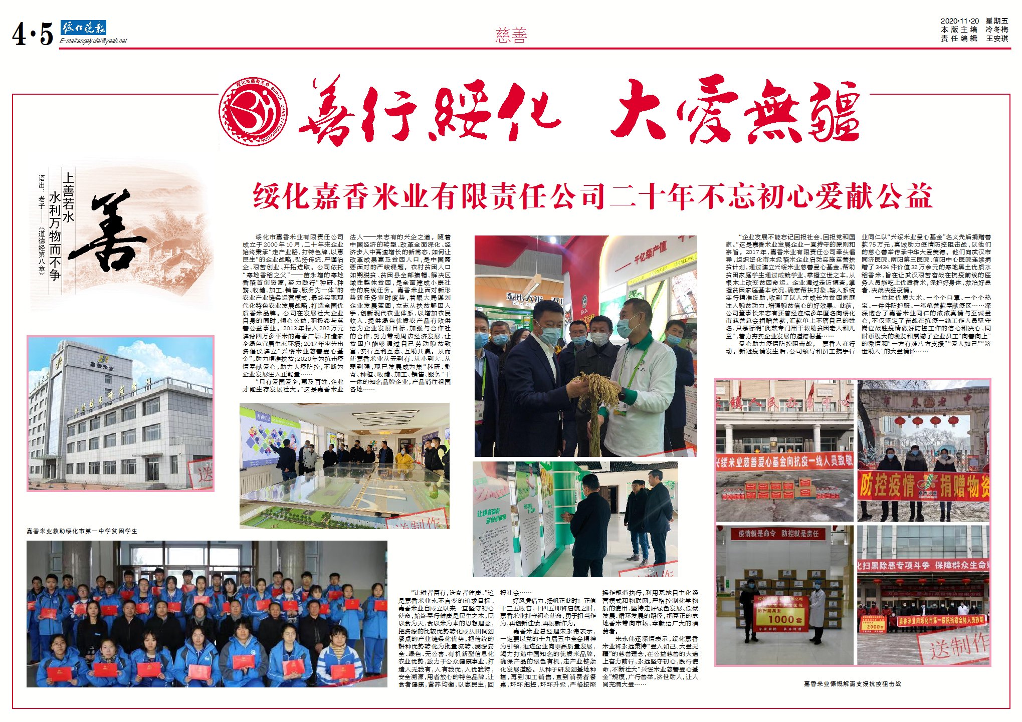 還會走訪到戶,關(guān)心特殊困難的群眾,舉辦慈善晚會,建立興綏基金,