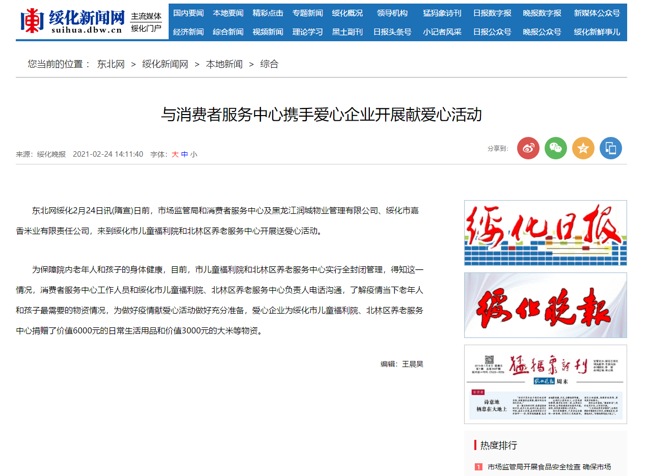 北林新聞訊:近日綏化市嘉香米業(yè)公司組織全體員職工開展了一場以“興綏惠民”為主題的義務(wù)勞動,對嘉香廣場及周邊存在的垃圾進行清理。...