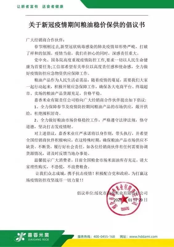 關(guān)于新冠疫情期間糧油穩(wěn)價保供的倡議書